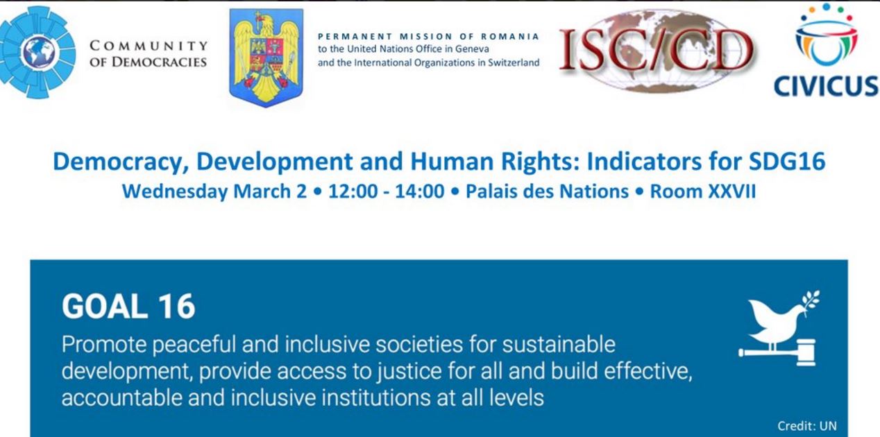 Democracy, Development and Human Rights: Indicators for SDG16 (March 2, 2016, Geneva, Switzerland)